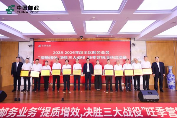为实现全区邮务业务高质量发展,总体部署“报刊年度收订攻坚战、集邮文创旺季突围战、函包新年贺岁收复战”三大战役营销活动,9月28日下午,区分公司召开2025-2026年度全区邮务业务“提质增效,决胜三大战役”旺季营销活动启动会。区分公司副总经理宝勒德主持会议,副总经理荣建国宣读表彰决定,副总经理潘峰作了题为《凝心聚力 强基固本 真抓实干 坚决打赢邮务业务“三大战役”》的讲话。