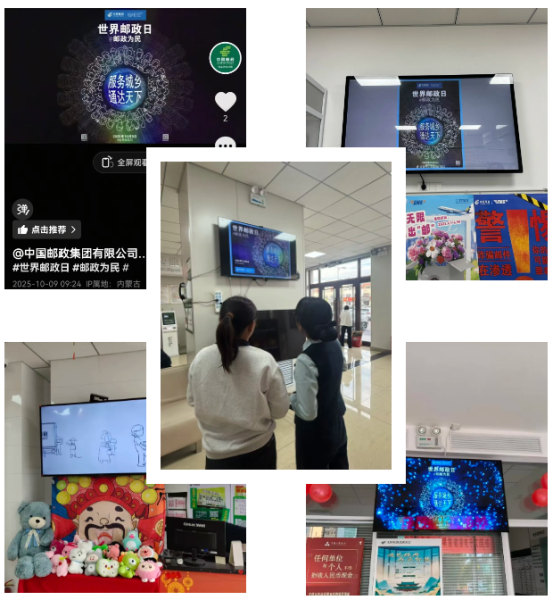 同时,呼伦贝尔市、通辽市、赤峰市、兴安盟、锡林郭勒盟分公司统筹网点资源,打造全域联动、多层渗透的特色宣传矩阵,“静态海报+动态视频”的立体宣传模式,让邮政服务的温度与力量,渗透到城市街巷与乡村田野的每一个角落。