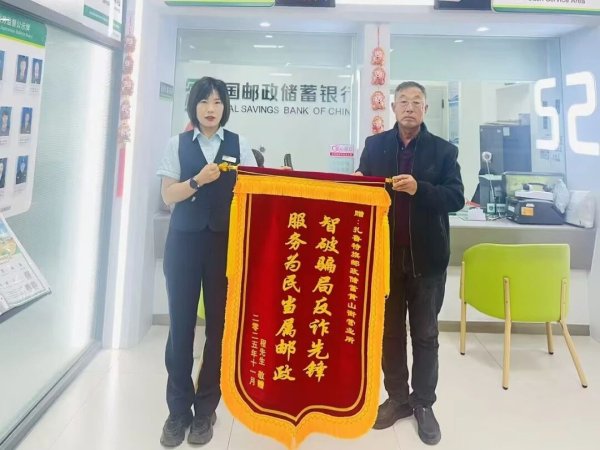 11月3日上午,程先生带着一面印着“智破骗局反诈先锋,服务为民当属邮政”的锦旗再次来到营业所,郑重地送到胡盼盼手中。与此同时,扎鲁特旗公安局反诈中心发来的表扬信也送到了网点,信中称赞邮政工作人员“展现出高度的反诈敏感性和专业素养,严格落实转账业务风险核查机制,为守护群众‘钱袋子’作出积极贡献”。