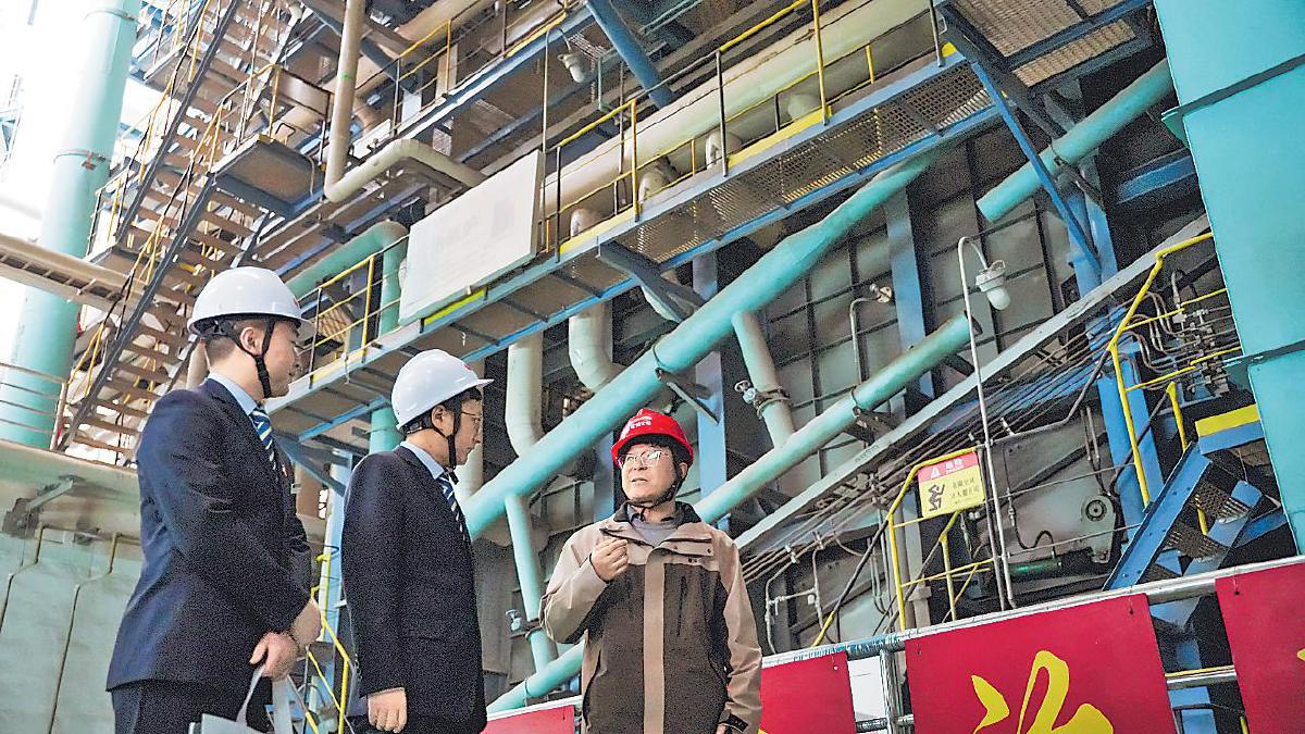 临夏州分行工作人员深入临夏鹭鸿环保电力有限公司了解生产情况。
