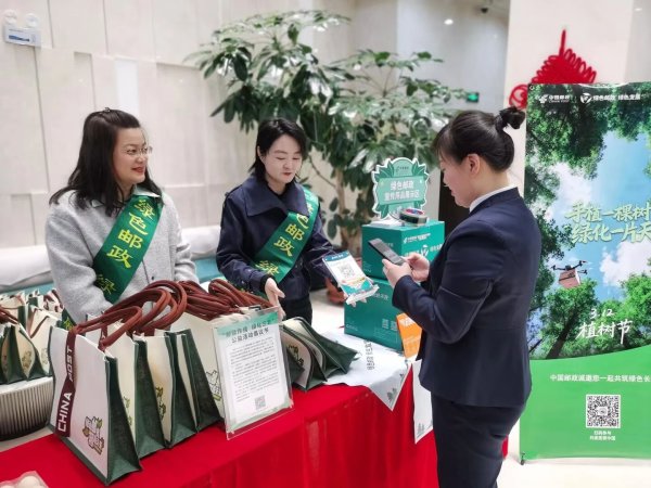 活动当天,全区邮政在营业网点、主题邮局、机关大楼等地开展“邮驿传情 绿化三北”主题活动,设置绿色宣传展示区,播放植树节宣传短片,工作人员现场讲解全民义务植树活动与绿色邮政知识,并为参与线上植树活动的爱心者赠送环保袋,用爱心汇聚绿色力量,以“邮政绿”守护“生态绿”,共同书写邮政人助力美丽中国建设的新篇章!