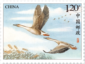China Post will issue a set of one special stamp featuring wild geese, with a denomination of 1.2 yuan (0.17 US dollars), on August 17, 2018.