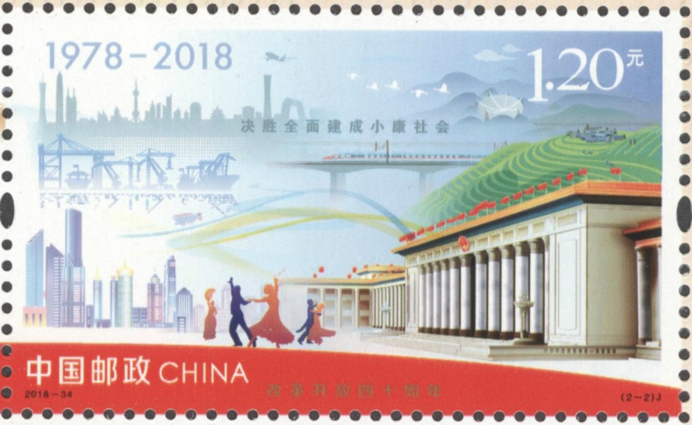 China Post will issue a set of two commemorative stamps and a miniature sheet featuring the 40thAnniversary of China's Reform and Opening-up, namely Holding the Banner Highly, the Great Practice, and Building the Dream in a New Era, with a denomination of 8.4 yuan (1.2206 U.S. dollars), on December 18, 2018. The Third Plenary Session of the 11th CPC Central Committee made the great decision that China will shift the Party's work to economic construction and the implementation of the reform and opening-up in 1978, which has opened up a new era for the development of the socialist cause. Moreover, 2018 marks the 40th anniversary of China's Reform and Opening-up.