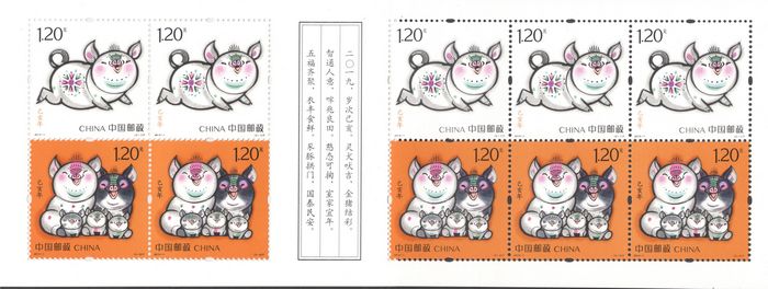 | 《己亥年》特种邮票 | ![]() ![]() ![]() | 中国邮政定于2019年1月5日发行《己亥年》特种邮票1套2枚,小本票1本。详情如下: 志号:2019-1 图序 图名 面值 (2-1)T 肥猪旺福 1.20元 (2-2)T 五福齐聚 1.20元 邮票规格:36×36毫米 齿孔度数:13度 整张枚数:版式一 16枚 版式二 6枚 整张规格:版式一 168×196毫米 版式二 128×180毫米 小本票编号:(56)2019 小本票成品规格:121×88毫米 小本票售价:12元 版 别:胶雕套印 防伪方式:防伪纸张 防伪油墨 异形齿孔 荧光喷码 设 计 者:韩美林 雕 刻 者:董琪、徐喆 小本票设计者:王虎鸣 责任编辑:王静 印 制 厂:北京邮票厂 出售办法:自发行之日起,在全国指定邮政网点、集邮网厅(http://jiyou.11185.cn)、中国集邮手机客户端和中国集邮微信商城出售,出售期限6个月。 注:同时发行《己亥年》邮票版式三(整张枚数:2套4枚;整张规格:120×160毫米;对联作者:常江),用于赠送给预订2019年全年纪特邮票的预订户。 |