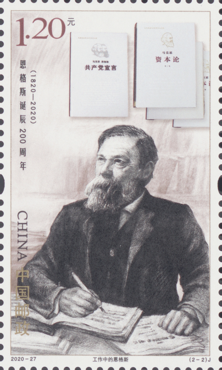 China post is to issue a set of 2 commemorative stamps entitled Friedrich Engels' 200th Birth Anniversary on November 28, 2020. The stamps are respectively named Young Friedrich Engels and Friedrich Engels at Work. The denomination of this set of stamps is 2.4 yuan. The planned circulation is 7.5 million sets. This set of stamps is presented with sketch technique. The design of the first stamp shows the bust of young Engels with his former residence as the background, while the design of the second stamp depicts the elderly Engels in the middle of his work, with the covers of the Chinese versions of The Communist Manifesto and Capital bearing the head portraits of Marx and Engels as the background. This set of stamps are designed by Wu Weishan, and printed by Henan Posts & Telecom Printing House with offset printing technology. To make the contents of the stamps fuller and richer, China Post will release their digital contents through the WeChat mini program “Encyclopedia of China Philately and Stamps”, so that the viewers can watch the short videos related to these stamps by scanning the designs with the AR function of the mini program. |
