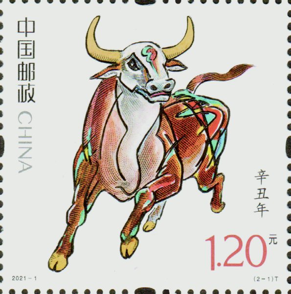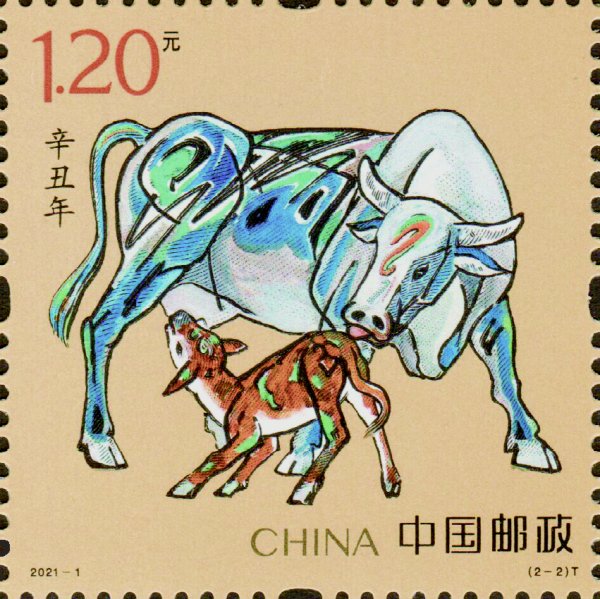 China Post is to issue a set of two special stamps for the Year of Xinchou on January 5, 2021. The designs of the stamps are named “Striving to be Strong” and “Happy Year of the Ox” respectively. The denomination of the stamps is 2.4 yuan. The planned circulation is 44.6 million for the first stamp, 42.8 million for the second, 2.5 million for the layout 2, and 6.3 million stamp booklets. The design of the special stamps of the Year of Xinchou continues the concept of “love for family and country” of the fourth round of zodiac stamps and the designer is the famous artist Yao Zhonghua. The special stamps vividly interpret and artistically display the spirit of zodiac ox “keeping feet on the ground, daring to work hard, pioneering and pushing ahead, staying diligent and dedicated” through the combination of movement and stillness, strength and warmth. The two stamps show the country’s anticipations and family’s expectations respectively, conveying strong New Year blessings. The first stamp, named “Striving to be Strong”, depicts the image of a heroic, powerful, indomitable running bull. The image of the bull, with its four hoofs raised, head up forward, and eyes piercing, symbolizes that Chinese people forge ahead against all difficulties and strive to achieve the great national rejuvenation. The second one, with the name of “Happy Year of the Ox”, depicts a heart-warming picture of the deep love between the mommy cow and the baby calf, and extends the best wishes for family prosperity, harmony and reunion to people all over the country.
