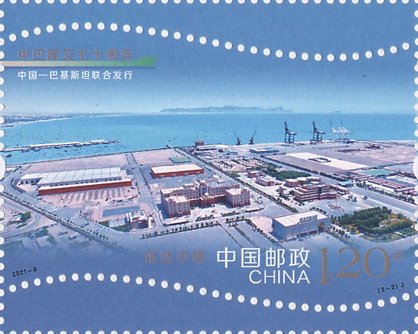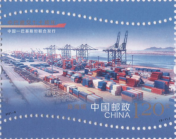 2021 marks the 70th anniversary of the establishment of diplomatic ties between People’s Republic of China and Islamic Republic of Pakistan. To enhance the mutual understanding and friendship between the two sides, China Post decides to jointly issue a set of two commemorative stamps entitled 70th Anniversary of China-Pakistan Diplomatic Ties with Pakistan on May 21, 2021. The design of one of the stamps is Zhuhai Port and the other Gwadar Port. The denomination of the stamps is 2.4 yuan and 7.1 million sets are planned to be issued. Zhuhai Port of China and Gwadar Port of Pakistan are chosen as the designs of the two stamps respectively. Zhuhai Port, as one of 24 pivotal ports in China’s coastline and 5 main ports in Guangdong Province, adjacent to Hongkong and Macao, enjoys the largest 150,000 DWT main navigation channel in the Pearl River Delta and the comprehensive logistic system combining the riverway, seaway, highway, railway and airway. It is an important port node along the Belt and Road routes. Gwadar Port, located in the southwest coastal area of Balochistan of Pakistan, is a pivotal node of many important ship routes from Africa and Europe to the eastern Asia via the Red Sea, the Strait of Hormuz and the Persian Gulf, and an important part of China-Pakistan Economic Corridor.