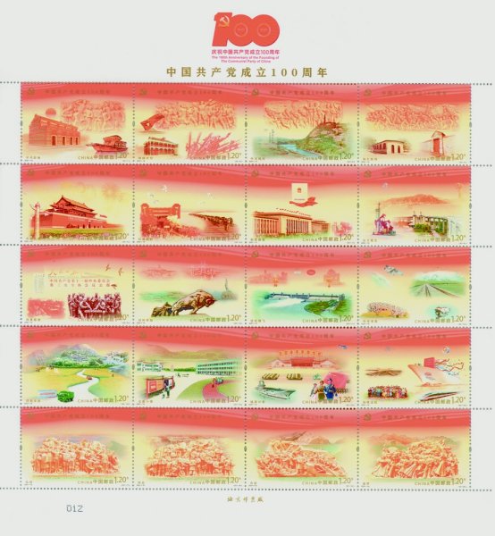 Commemorative stamps The 100th Anniversary of the Founding of The Communist Party of China are a set of stamps with the largest number of pieces, the broadest contents and the highest specification in the series of stamps issued for the anniversaries of the founding of the CPC. Focusing on the extraordinary 100-year journey the CPC has traveled, this set of stamps present the new democratic revolution, the socialist revolution and development, the new period of reform and opening-up and socialist modernization, the new era of building socialism with Chinese characteristics, and other comprehensive contents, demonstrating the achievements made by generations of CPC members through their hard work and persistence, and reflecting the course of its struggles over the past century for seeking happiness for the Chinese people and rejuvenation for the Chinese nation. |