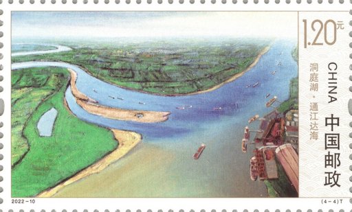China Post is to issue philatelic products entitled Dongting Lake on May 28, 2022, which consist of 4 pieces of special stamps in one set and one souvenir sheet. The denomination of the whole set of products is 10 yuan. 6.6 million sets of stamps and 5.9 million souvenir sheet will be issued. This set of stamps are designed by Xu Li, vice president of the China Artists Association, with oil painting techniques to show the representative landscapes of the Dongting Lake. The first picture portrays the beauty and elegance of the emerald Junshan Island. The second picture, composed of the Lingyun Pagoda and wetland scenery including water plants as well as flying birds, shows the sound ecology of the Dongting Lake. The third picture depicts the Chengtoushan ruins where there exists the most ancient and best preserved rice paddy site of its kind ever discovered in the world, which reflects the long prehistoric civilization of the lake area. The fourth picture displays the splendor of Sanjiangkou, the Dongting Lake’s entrance into the Yangtze River, where a great many barges are vying forward on the broad water. The souvenir sheet depicts the wide-angle picture of the Dongting Lake with the Yueyang Tower, the vast water and green trees that underscore the profound cultural heritage and breathtaking scenery of the lake area.