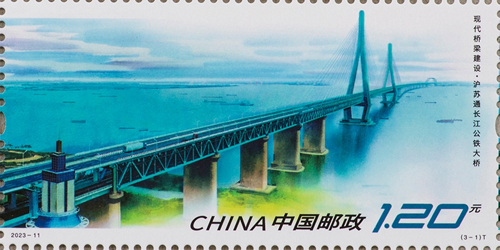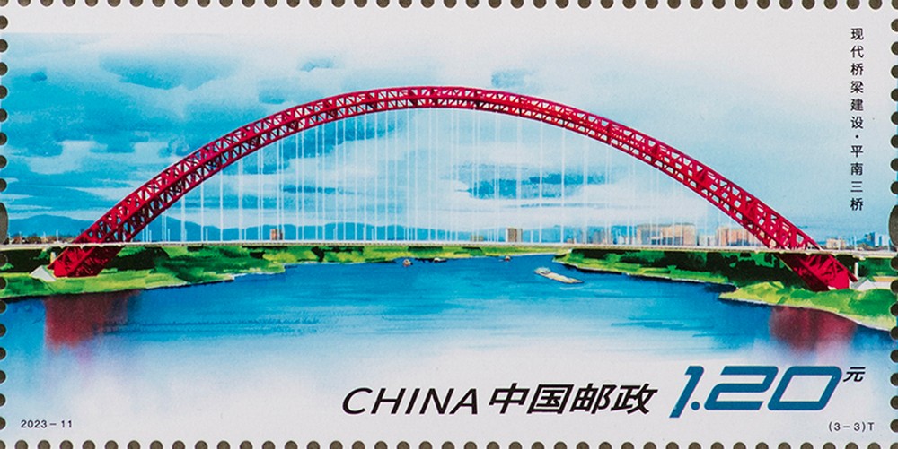 China Post is to issue a set of three special stamps and a souvenir sheet entitled Modern Bridge Construction. The designs of the three stamps are respectively named Shanghai-Suzhou-Nantong Yangtze River Bridge, Oujiang Beikou Bridge and the Third Pingnan Bridge. The design of the souvenir sheet is named Beipan River Bridge. The denomination of the whole set of stamps is 9.60 yuan. The planned circulation is 7.35 million sets of stamps and 5.85 million souvenir sheets. The Shanghai-Suzhou-Nantong Yangtze River Bridge, independently designed and built by China, is the world’s first cable-stayed bridge with a main span of more than 1,000 meters that can accommodate both cars and trains. The bridge boasts five world records, which makes it a milestone in the history of railway bridge construction in China and even in the world. The Oujiang Beikou Bridge is the world’s first three-tower four-span double-decked steel-truss suspension bridge, holding three world records. The Third Pingnan Bridge is a concrete-filled steel tubular arch bridge with the largest span among all the bridges opened to traffic in the world. During its construction, 20 research projects were established and eventually 58 inventions were patented. The Beipan River Bridge connecting Yunnan and Guizhou is a twin-tower four-lane steel-truss cable-stayed bridge. Soaring 565 meters (equivalent to a 200-story skyscraper) over Beipan River, it’s currently the world’s highest bridge with the second largest span of its kind.