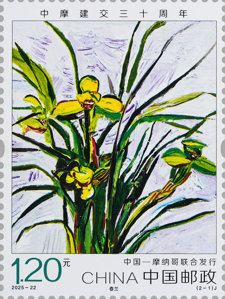 China Post is to issue a set of two commemorative stamps entitled The 30th Anniversary of China-Monaco Diplomatic Relations on October 15, 2025. The designs of the stamps are named Cymbidium and Campanula medium. The denomination of the whole set is 2.40 yuan, and the planned circulation is 4.50 million sets.
