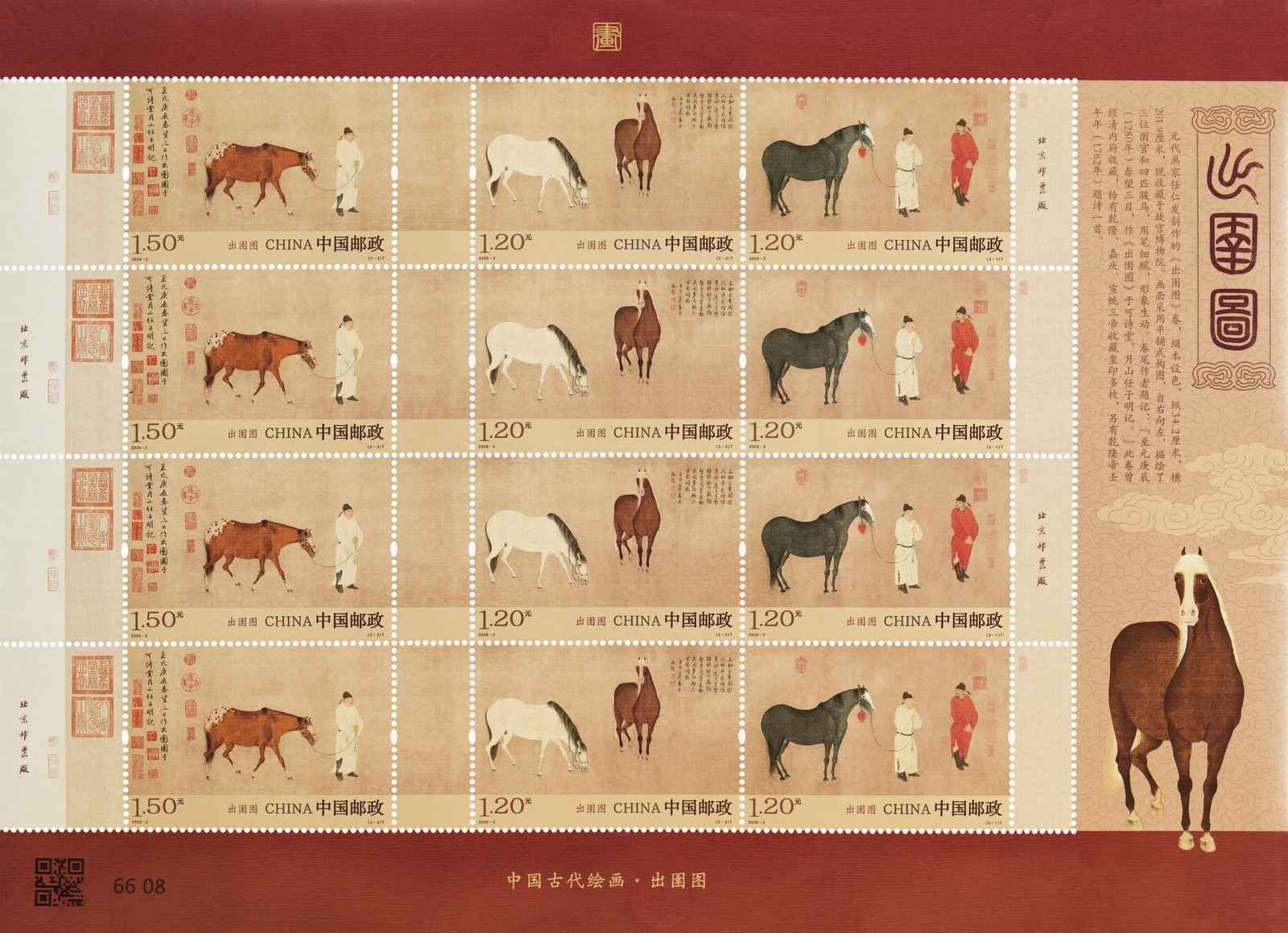中国邮政定于2026年3月3日发行《出圉图》特种邮票1套3枚。详情如下: