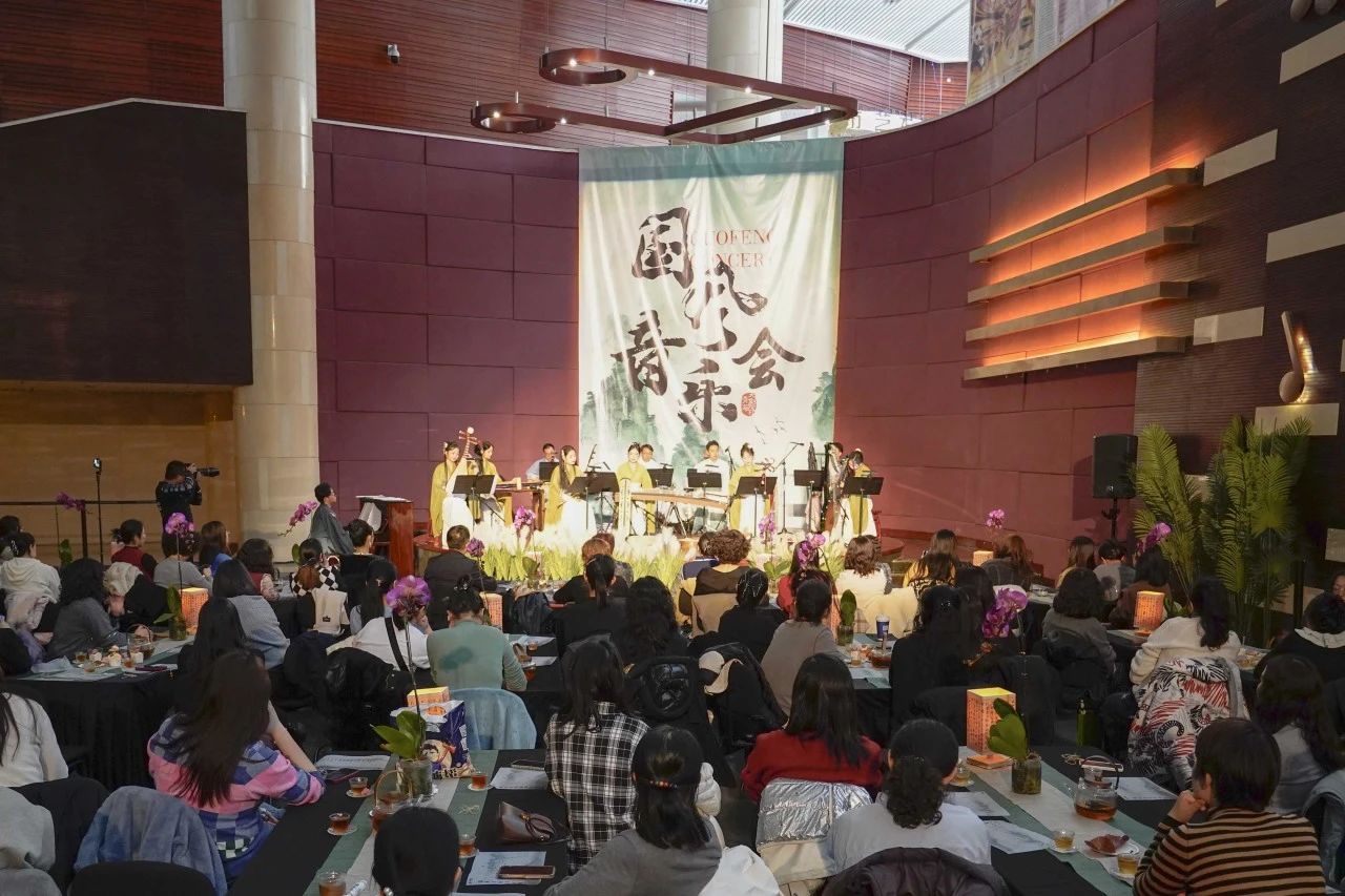 同日下午,青海省大剧院内一场国风音乐会如约而至,邮政女员工们围壶品茗,悠然听乐。演奏家们身披华丽的汉服,宛若从千年古画中走出,轻盈地步入舞台中央。古筝、二胡、琵琶等传统乐器仿佛被赋予了生命,让《清平乐》《山鹰之歌》等经典曲目在音乐厅内翩跹流转。当《象王行》的浑厚旋律如雪山融水般奔涌而来,大家沉醉在这美妙的国风音乐之中,仿佛也随着旋律一起穿越千年时光,领略着华夏文明的博大精深,感受文化的深厚底蕴。