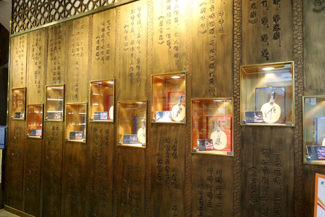 —明效应,签名球拍见证荣耀。邮局内陈列孙颖莎、王楚钦、王曼昱等多位乒乓球世界冠军的签名球拍,吸引众多体育迷驻足,近距离感受国球风采与拼搏精神。