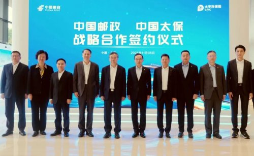 11月5日,在第八届中国国际进口博览会开幕之际,中国邮政集团有限公司与中国太平洋保险(集团)股份有限公司(以下简称“中国太保”)在上海续签战略合作协议。