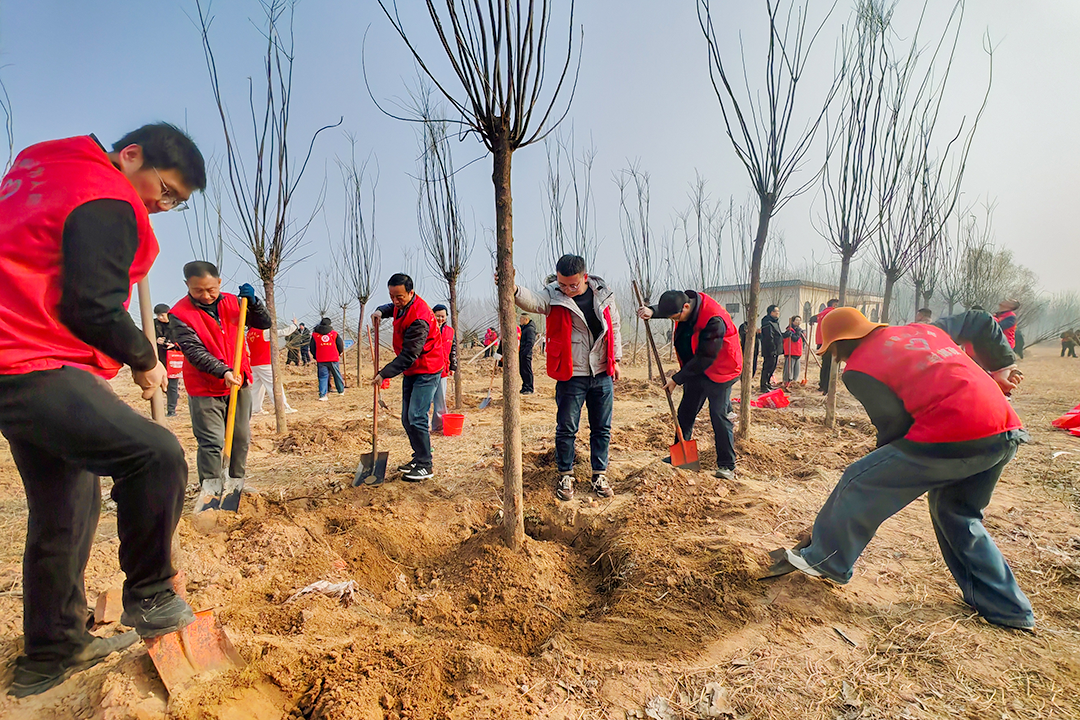 郑州市邮政分公司各单位纷纷开展义务植树活动。从植树基地到黄河岸边,从田间地头到林场,邮政干部职工热情高涨、干劲十足,各环节衔接有序、配合默契,以实际行动践行绿色发展理念,为初春大地增添了盎然绿意。