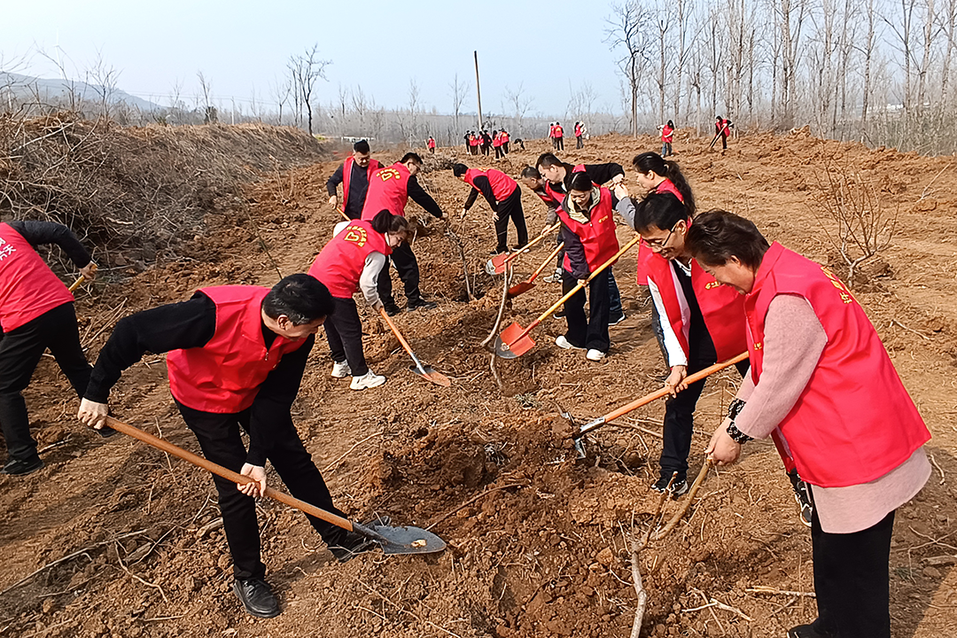 汝阳县邮政分公司积极响应县委、县政府号召,组织党员、团员青年及职工代表,在前坪水库植树点开展义务植树活动,为汝阳大地培植绿色山河、守护生态家园。