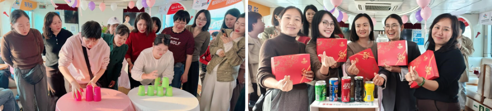 晚宴期间,趣味游戏环节将现场氛围推向高潮。女职工们踊跃参与、默契配合,掌声、笑声、欢呼声此起彼伏,既考验了协作能力,又拉近了彼此距离,充分展现了湛江邮政女职工积极向上、团结奋进的精神风貌。每位参与者都收获了精美纪念礼品,脸上洋溢着幸福笑容。