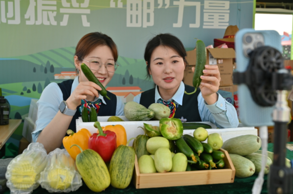 活动现场的寿光彩椒、羊角蜜、白玉黄瓜等潍坊特色农产品,在邮政线上直播间同步亮相,将风筝节现场的热闹氛围传递给广大网友。