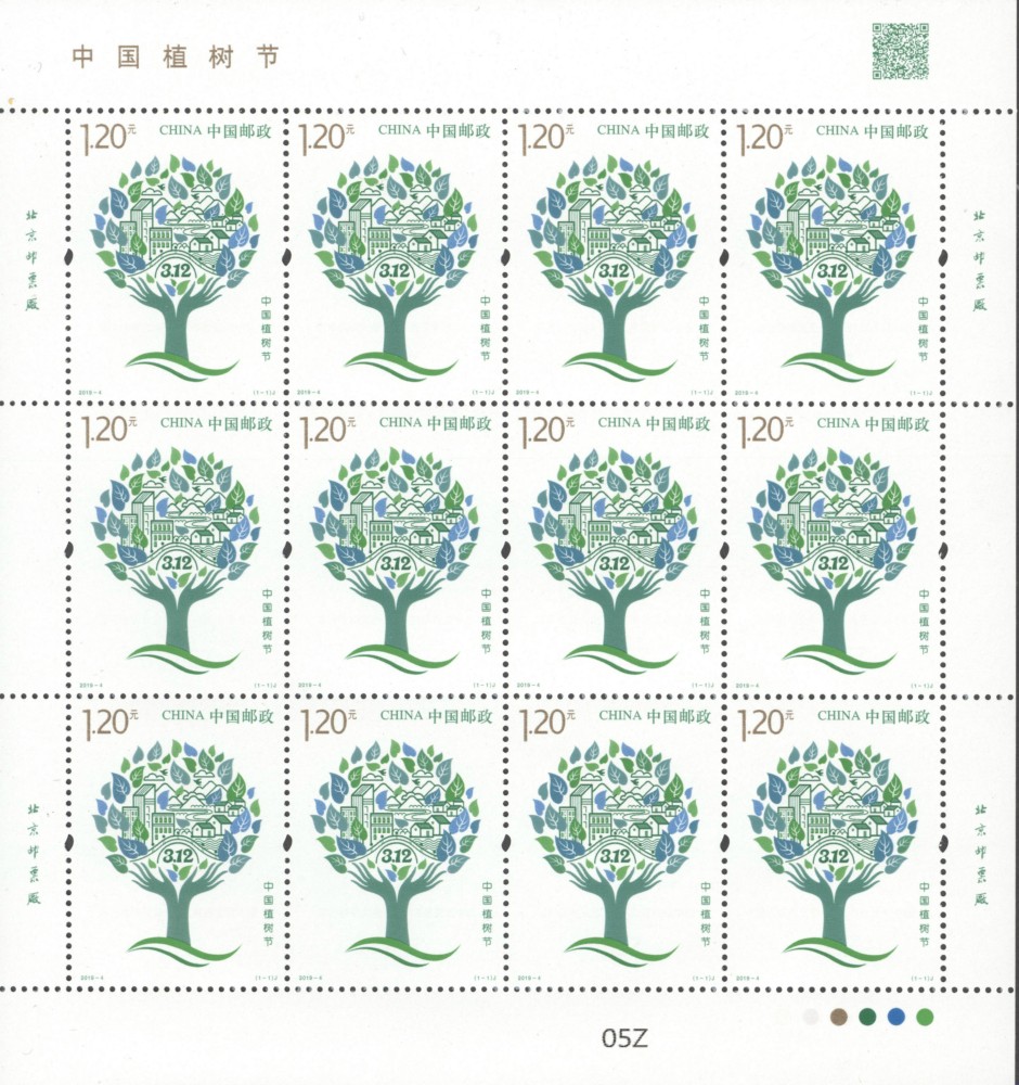 中国邮政定于2019年3月12日发行《中国植树节》纪念邮票1套1枚,邮票面值1.20元。